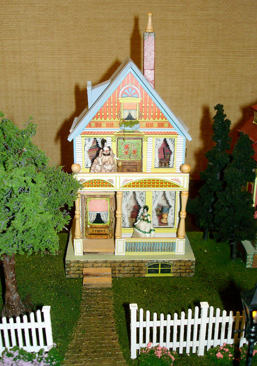 This week's exhibit is Cynthia Howe's quarter-scale Bliss Street displayed at the 2011 Good Sam Show. It consists of a row of six Bliss houses complete with landscaping and accessories. Each house is an exact replica of an authentic Bliss dollhouse produced in the early 1900s by Bliss Mfg. Co., Pawtucket, Rhode Island. The company pioneered in the development of lithographed paper on wooden dollhouses and toys. Cynthia is currently offering four 144th scale "Little Bit o'Bliss" dollhouse kits on her website. cynthiahoweminiatures.com All photos are courtesy of Connie Sauve.